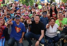Acompañado por el diputado presidente de la Mesa Directiva del Congreso del Estado, Baltazar Gaona García, y el secretario de Finanzas Administración de Michoacán, Luis Navarro García, el alcalde encabezó el tradicional recorrido a los puntos donde estará exhibida la cartelera de actividades.
